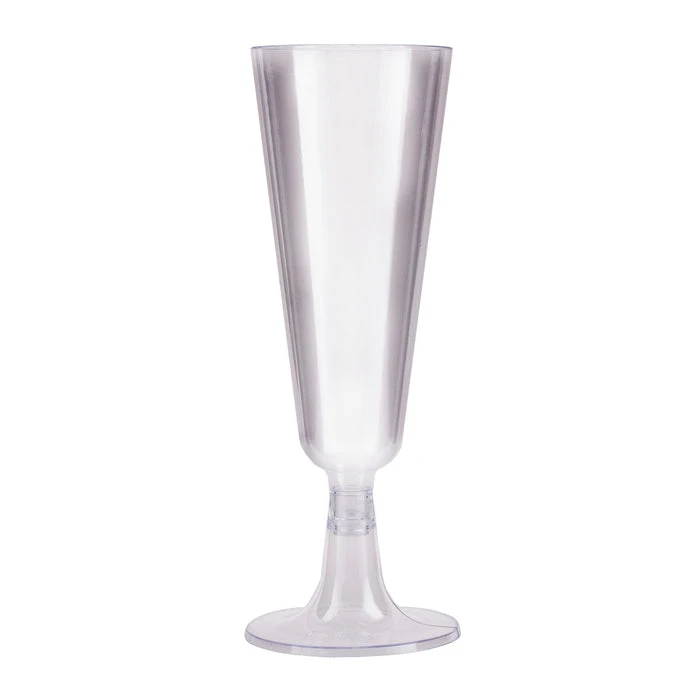 Complete your brunch with a sweet, fruity cocktail in elegant plastic glassware. These glasses are great for brunch, parties, business receptions, and everyday use. They are made of disposable plastic making clean-up a breeze. All it requires is a simple assembly of the base and the glass. This package comes with 20 flutes that measure 6.25″ high with a rim diameter of 2.06″. The flutes have a liquid capacity of 5.5 ounces.