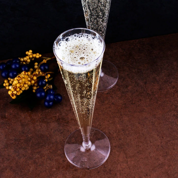 These plastic champagne flutes are perfect for your next celebration. They are great for toasting at weddings, parties, and business receptions. The simple two piece design makes assembly a breeze. Each package comes with 10 flutes and each cup holds 5 ounces of liquid.