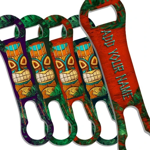 Choose from several color options of this fun tropical “Tiki Idol” V-Rod® Bottle Opener design, and also have the ability to add your own text right into the design. Adding your name (or other text) is optional, but a cool way to claim your opener. Simply choose your color and type in your message. This is also a great customizable gift idea for the bartenders or beer drinkers you wish to show your appreciation for.