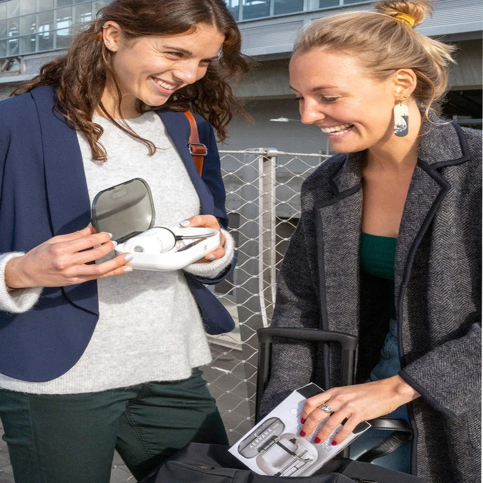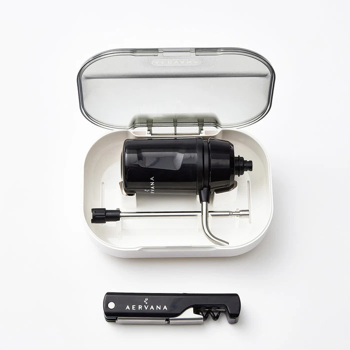 The Aervana Travel is our first one-touch wine aerator designed specifically for the on-the-go wine drinkers. It provides the same amazing instant aeration for wines that need to breathe, in a compact, portable design. Simply press the button on top to dispense a smoother, more balanced glass of wine. The Aervana Travel comes in a convenient carrying case to fit perfectly in a purse, picnic basket, or carry-on bag. In the carrying case you’ll find the one-touch wine aerator and a matching corkscrew so you can enjoy your wine anytime and anywhere. Aervana Travel is your friend no matter where wine takes you. And it all comes in a convenient carrying case keeping the Aervana Travel, tube, and corkscrew neat and safe no matter how you’ll be transporting it.