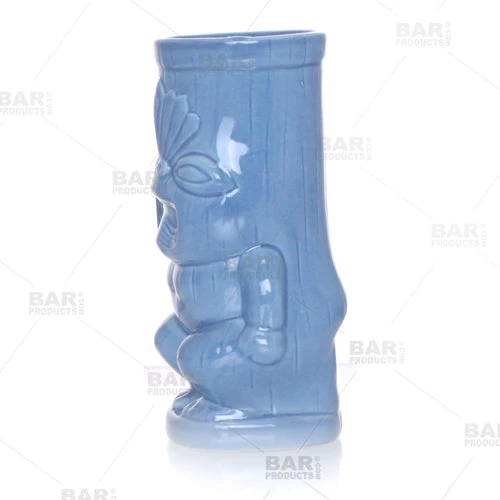 Add some humor to your next frozen cocktail presentation with this blue mooning little tiki man mug. Another great piece from the extensive Barconic® Tiki Drinkware collection, this full figured butt showing tiki mug is one of kind in our in our newly added tiki collection. He stands about 6″ tall and holds up to 12 ounces of tasty and delectable liquid. Showcasing a full body, his strained face and curvy butt are the main focal point while he appears to be grabbing onto his seat. This cute tiki mug is even a great piece to serve any frozen drink at any outdoor party or other event. The blue colored glaze offers a smooth and glossy finish, making this tiki drinkware piece a great addition to any bartending collection.