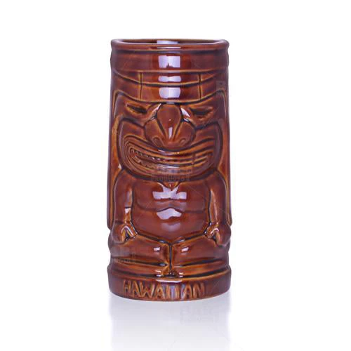 Our cool BarConic® Drinkware Hawaii Tiki Mug is a fun and festive way to show your appreciation for Polynesian culture. The quality craftsmanship of this ceramic tiki mug says it all with its stylish and unique sculpting. The depiction of this authentic looking tiki totem character makes you feel like you’re right in the middle of a luau. This tiki cocktail tumbler is the epitome of Hawaiian tiki culture and is sure to spread that laid back island vibe. Each tiki drinkware piece from the BarConic® line of drinkware was handcrafted by our skilled artisans and showcases an original element to differentiate it from the rest. This particular mug not only offers a tiki totem figurine, but also a “Hawaiian” message molded right into the ceramic design. The brown glossy glaze provides a clean and smooth finish, adding a touch of elegance to a fun tropical drinkware piece. This BarConic® Drinkware Hawaii Tiki Mug will hold up to 12 ounces of your favorite tropical beverage while leaving a lasting impression.
