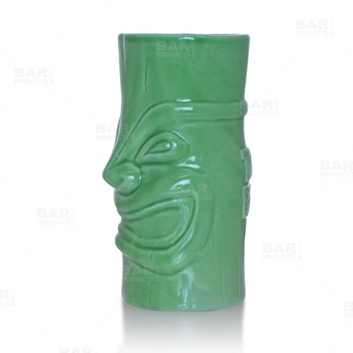 You can’t help but look at this cute tiki man and smile. The quality craftsmanship of this ceramic tiki mug says it all with its stylish lines and form. Showcasing a very faint body bevel, the large grinning tiki mouth is the focal point of this piece. This tiki mug is sure to provide a happy vibe all around. Each tiki drinkware piece from the BarConic® line of drinkware is quality handcrafted and showcases an original element to differentiate it from the rest. This particular mug not only offers a giddy tiki face, but also a “Tiki Bar” message molded right into the ceramic design. The lime green glossy glaze provides a clean and smooth finish, adding a touch of elegance to a fun tropical drinkware piece. He stands approximately 5.75 inches tall with a 2.75 base and lip diameter. Tiki Bar Man will hold up to 12 ounces of your favorite frozen concoction while giving it the best presentation on the block.