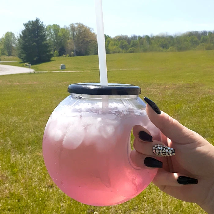 Our BarConic® 40oz Fishbowl includes a handle, lid and straw. It is made of durable food-safe plastic that is easy to clean and reuse. The fishbowl cup is normally used to serve “Fishbowl Punch” cocktails and is popular with beach going crowds or any setting that calls for big, cold and fruity cocktails. Fishbowl style drinks are growing more and more popular among master mixologist because they allow for room to create beautiful and interesting craft cocktails!