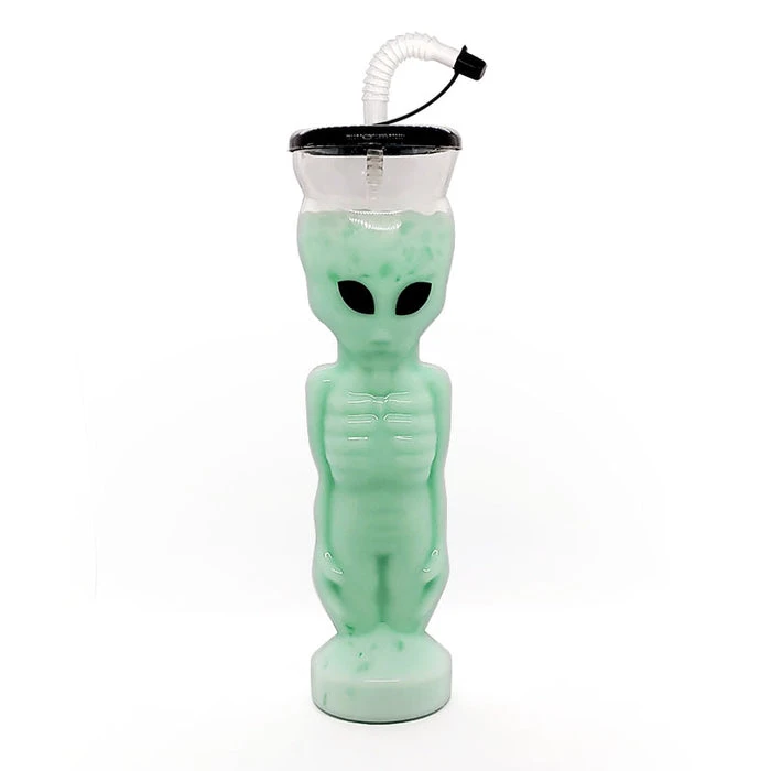 A BarConic® fun take on the traditional party yard. Your guests are sure to appreciate the fun element that this party yard brings to their experience. Fix some cocktails having guests feel from a far away galaxy. Our alien party yard holds 27 oz. and stands approximately 12 Inches tall. The maximum width of the rim and base is 3 Inches making it the perfect size to accommodate many beverages. Comes complete with a black plastic lid and extra long capped bendy straw.