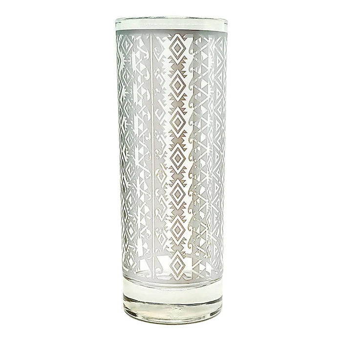 If you are looking for a completely unique and elegant way to serve up your highball type cocktails, then this custom Aztec inspired Collins glass is perfect to add to your glassware arsenal. Featuring a faux etch (scratch resistant) silver imprint, this professional, high-end glass is simply gorgeous! Buy in quantity and SAVE.