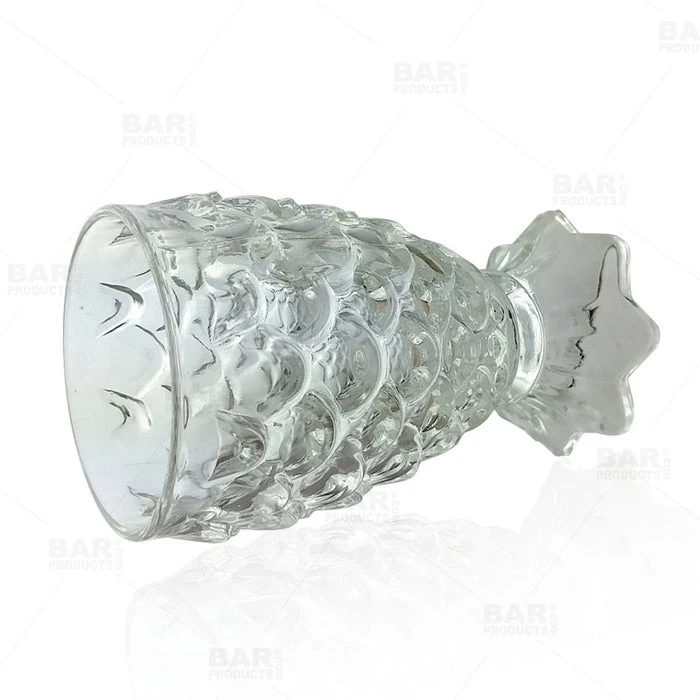 You are going to absolutely love the elegance, detail and quality of this fun cocktail glass. This Upside Down Pineapple glass is the perfect vessel for any type of craft cocktail. It is made of a thick quality glass material giving you a professional look and feel. This unique design will set it apart from most other glassware taking your drink presentations up a couple of notches. Add this beautiful 8 ounce pineapple glass to your collection today. This pineapple glass measures 5″ tall with 2 1/2″ mouth.