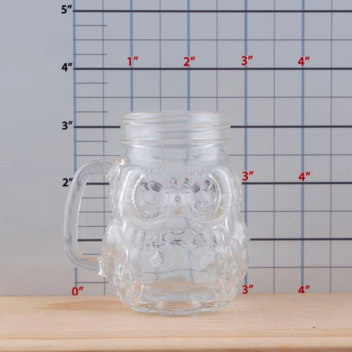This adorable little owl mason jar is the perfect accessory to have on hand for any occasion. This durable piece of glass is perfect for making any small seasonal cocktail. It stands 3.25″ tall and has a rim diameter of 1.5 inches. Its heavily detailed design features a classic owl look, with two big round eyes and an individual bumped pattern to emulate the fur pattern of an owl. This glass also has a small handle to make holding on to your drink much easier. This glass is dishwasher safe.