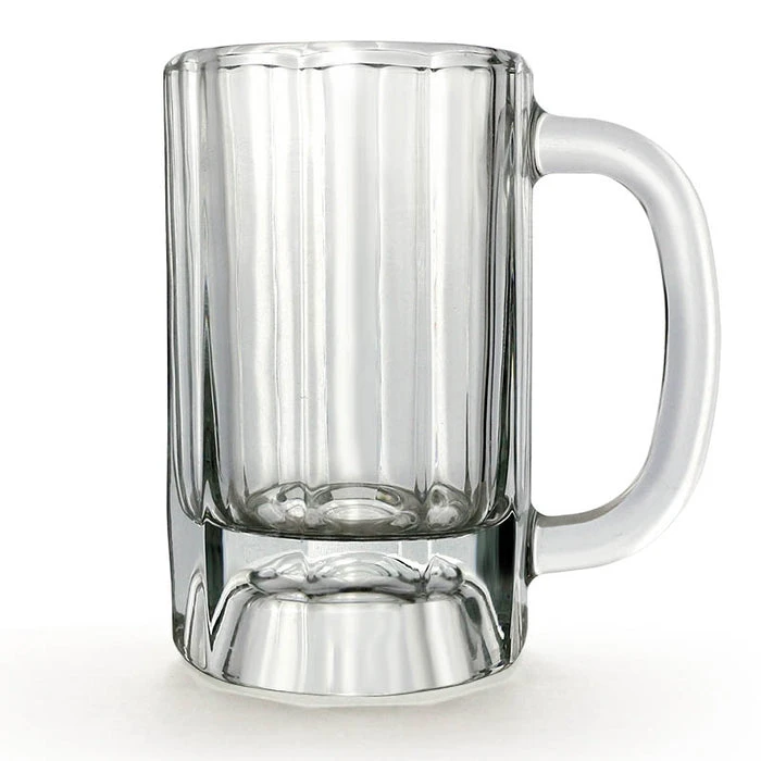 You are sure to be more than impressed with the quality of this 10 ounce paneled beer mug with handle. Constructed from a thick, heavy glass this beer mug is a great choice for your draft and bottled beer service. The paneled design of this mug is visually appealing while the weight reassures a high quality glassware piece. Backed by the BarConic® brand name. Sold by the case of 12.