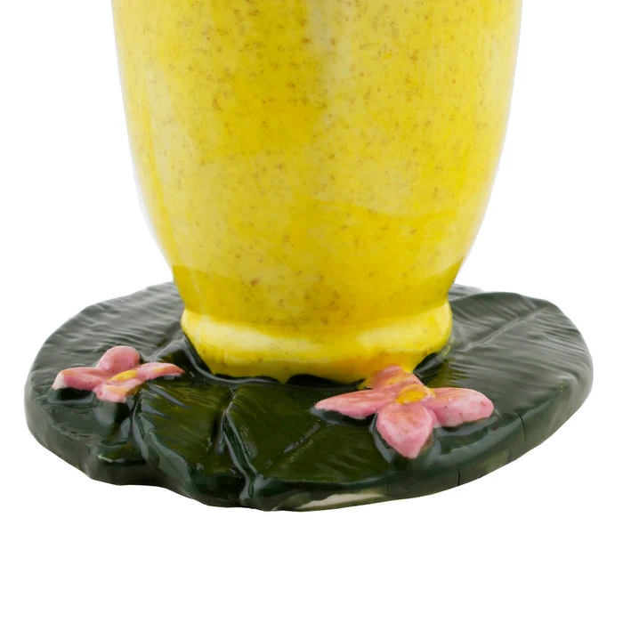 If you’re looking for a unique piece of drinkware for your collection, then you’ve come to the right place. This banana tiki glass is very bright and vibrant and will for sure have your guest talking about it while drinking some fruity cocktails. It features highly detailed features that a banana would have such as peeling back the skin and hand painted texture of the skin. It also sits on a leaf design that has flowers on it. Made of ceramic, This glass is very durable and made to last. It has a measurement of 8″ in height with a rim diameter of 2.5″. The base of this glass measures 4″ x 4.25″. Each glass has a liquid capacity of 18 ounces.