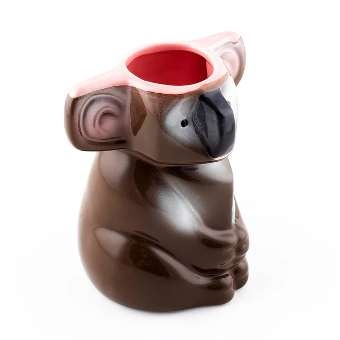 This adorable Koala tiki is just eager to find a new home in your bar. This product is made of durable ceramic and is hand painted and glazed to preserve its quality. This Koala is brown and features pink colored ears and light blue highlights. It is even holding a small number of eucalypt leaves. This tiki stands 6″ tall and has a rim diameter of 2″. Has a liquid capacity of 22 ounces.