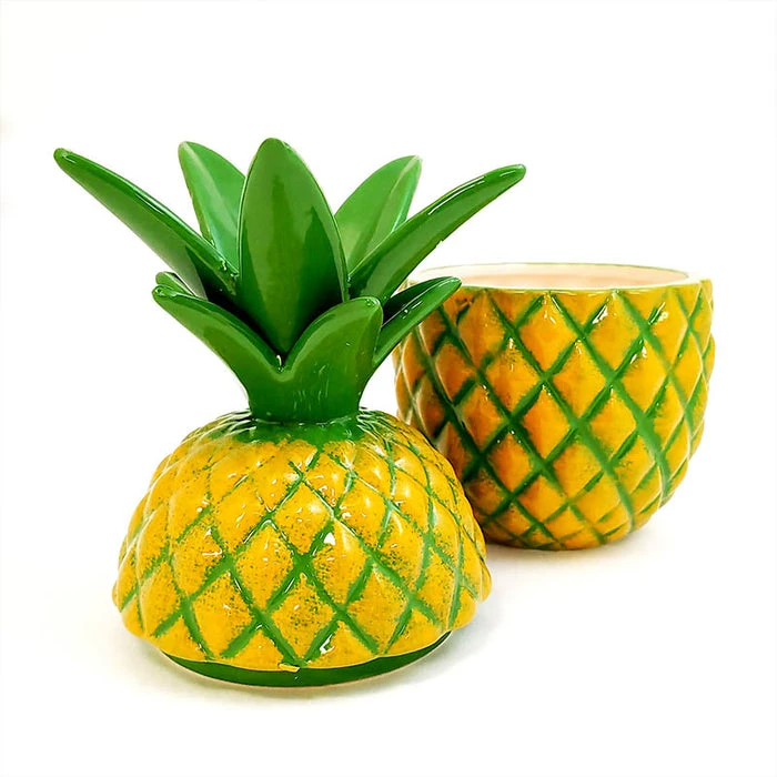 Talk about a clever design! We are in love with this ceramic tiki mug! This handcrafted drinking vessel showcases so many cool elements. Holding up to 14 ounces of your best tropical libation, serve your guests by flipping the lid and creating a sturdy stand to set the cocktail on top of. Everyone will love this creative twist on your tiki drinkware service!