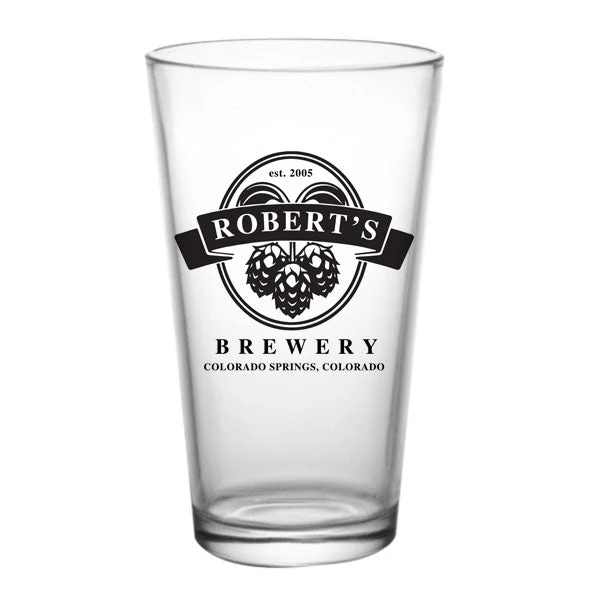 This 16 ounce beer / mixing glass is one of our best sellers. It showcases a high quality clarity and looks fantastic with our custom screen printing process. The ink will not wash off in the dishwasher, lasting for years to come.