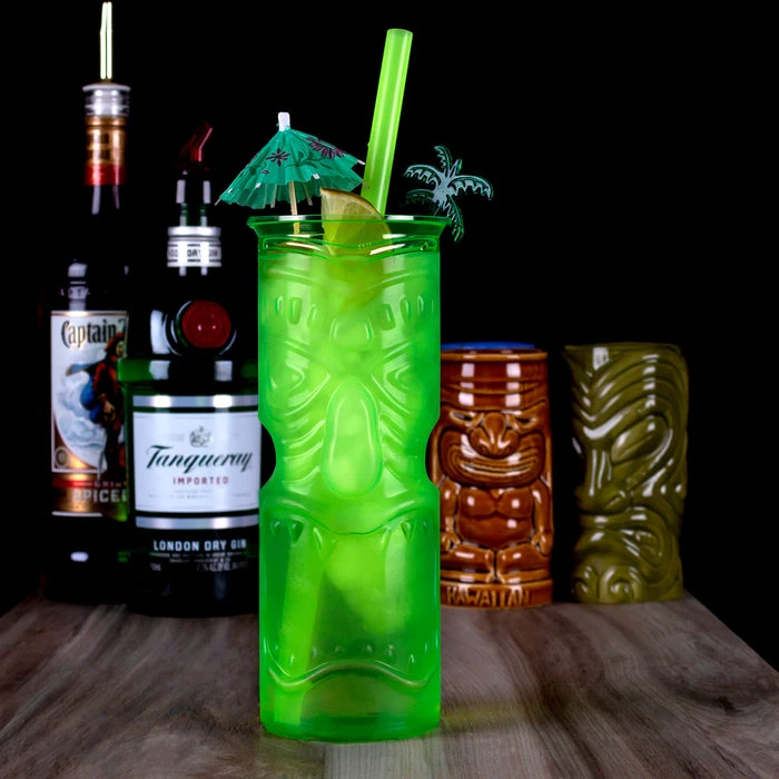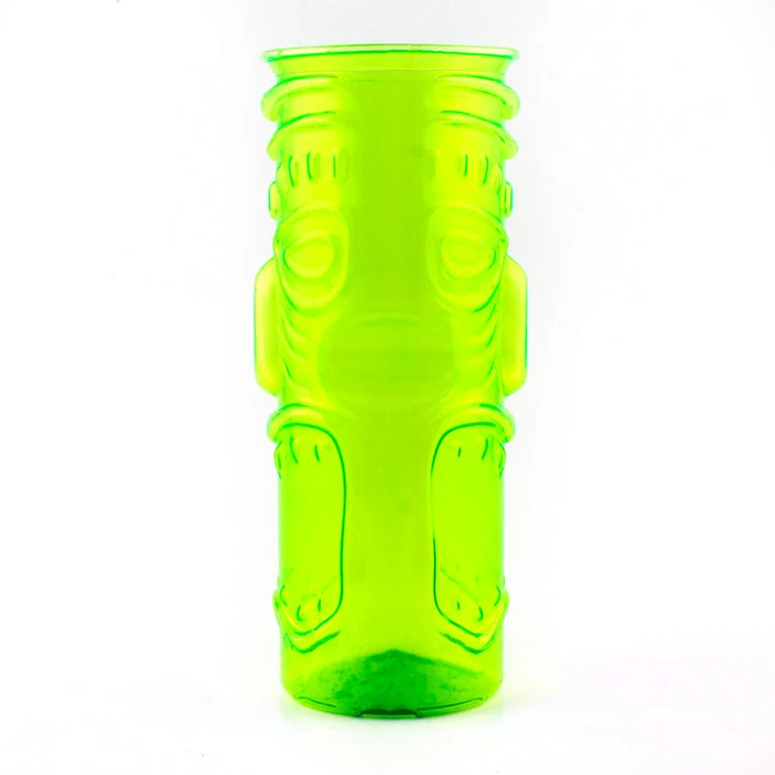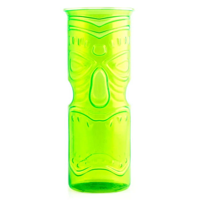 This fun tiki cup is the perfect cup to make your colorfully tropical drinks in. These cups are made of high quality durable plastic material that wont easily break and they feature an embossed tiki face design showcasing a slightly transparent green color. This cup is 8 1/2 inches in height with a 3.25 inch diameter and can hold 32oz of liquid. The tiki mixology trend is showing no signs of slowing down and we feel it is here to stay. Stock up on these great reusable tiki cups and enjoy one of the best movements in modern mixology.