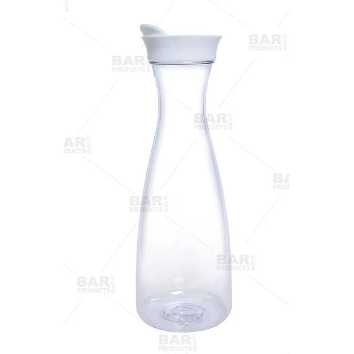 Choose from a black or white tight sealed screw-on lid that securely and easily snaps open / closed a dispensing hole. These carafes are spill-proof, unbreakable under normal use and the perfect substitute for glass carafes. They are not only great for behind the bar service, but can also be considered for table service as well. Deliver a juice or even wine filled carafe to your guest’s table, providing them with an easy refill option. Hand Wash Only.