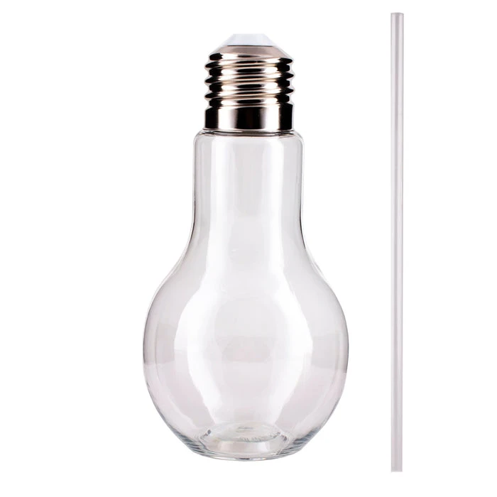 Get lit at your next party with this cool light bulb shaped cup. This 16 ounce cup is made of very hard durable plastic. It includes a silver screw top and includes a straw. This cup can also be used to fill with candy treats for a party favor, too. It is Reusable and is hand wash recommended. This cup stands 7″ tall.