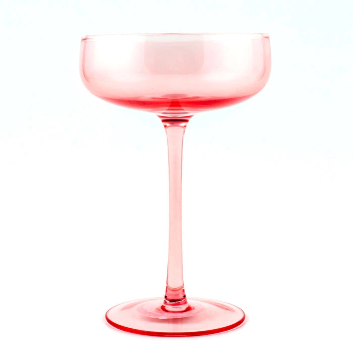 Enjoy a glass of champagne with this beautiful Mid Century Champagne Coupe Glass. This glass will make you feel extra classy and fancy while drinking your favorite drink for any occasion. It has a light blush color that makes this glass stand out from the rest. This glass is also great for making Manhattan cocktails and more. It measures 6.25″ high and has a rim diameter of 4″. It has a liquid capacity of 8 ounces. This product is hand wash recommended