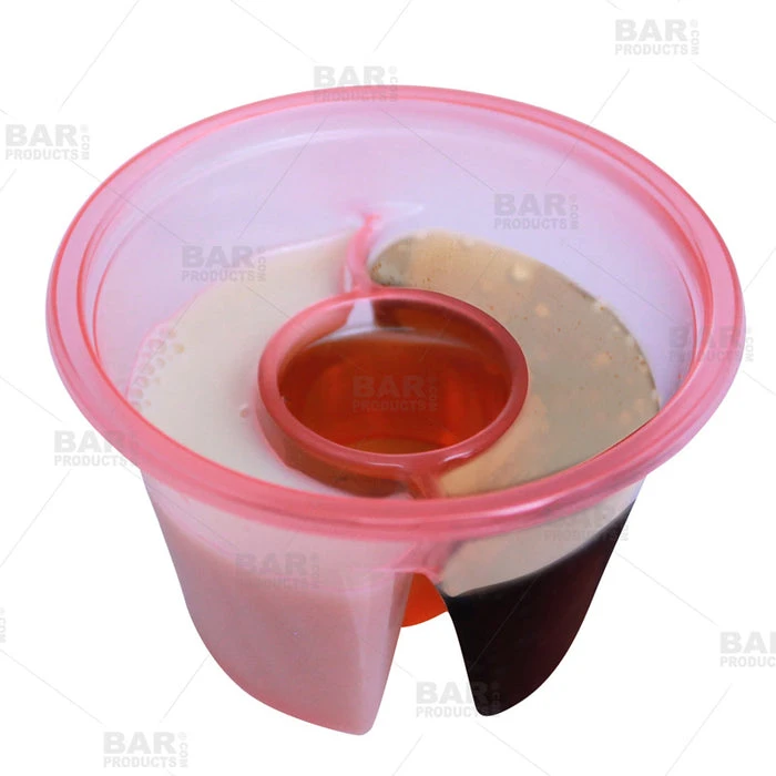 These exciting new 3 Chamber Neon Red Bomb SHOTZ® are the new way to serve up shooters that will have everyone talking! The patented 3 Chamber Bomb SHOTZ® provide a new twist on the previously popular Jager Bomb shots; with three chambers for endless liquor and chaser combinations. The chambers are molded with plastic dividers, keeping each liquor and/or chaser separate until consumed. Traditional bomb shots are wasteful with a lot of cleanup and can increase your chances of breaking glass. These Bomb SHOTZ® are small, lightweight, plastic and disposable- perfect for serving up shots all while showcasing the shot ingredients in a fun, eye-catching way.