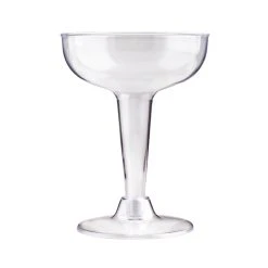 These plastic champagne coupes are perfect for serving your guest at any major party or event. Each cup is built in two separate pieces that are pre assembled. These cups are made of clear plastic and come in packs of 20 cups. Each individual cup has a liquid capacity of 4 ounces and measure 4.25″ tall and have a rim diameter of 3.25″.