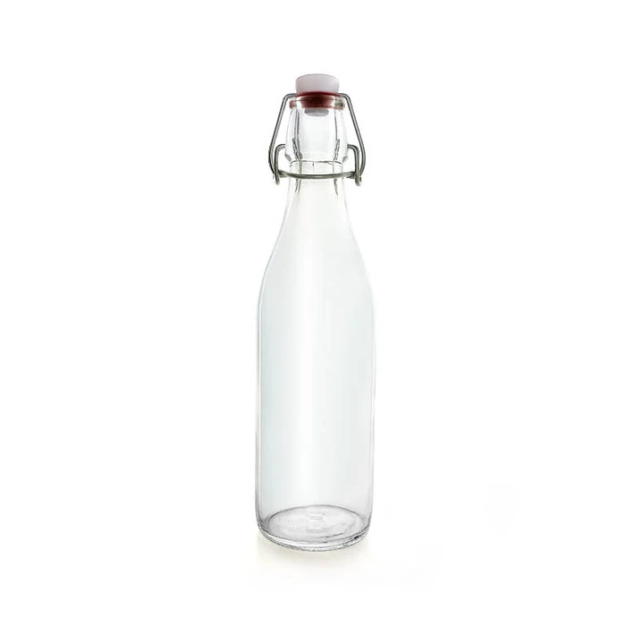 This clear glass bottle with swing top lid can offer a fantastic utility in many different service scenarios. To start, the most dominate feature of this bottle is its tightly suctioned lid mechanism. If you are someone who cares about maintaining ultimate freshness, then you are sure to appreciate this. With a flip of the bar, the cork like rubber insert will close off the opening of this bottle so that nothing is getting through.