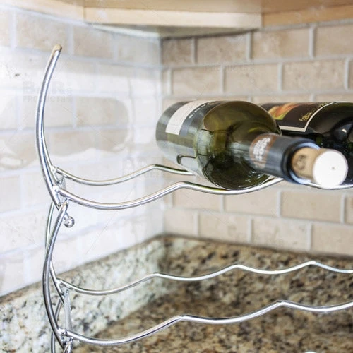 This chrome Wine Rack comfortably seats 12 wine bottles and looks perfect in any home kitchen or professional bar / restaurant. This chrome wine rack features 3 shelves that can accomodate up to 4 wine bottles each. Store and display your beloved wine collection with this beautiful modern and minimalistic metal wine rack.
