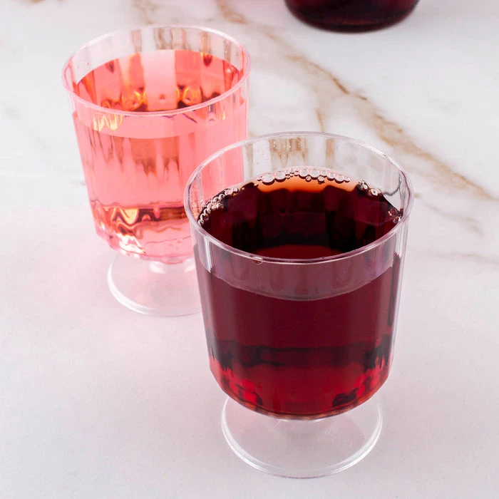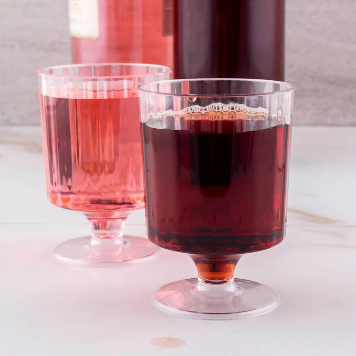 These wine stem glasses are elegantly fluted to mimic the appearance of crystal glass. Made of durable plastic, These cups offer all the beauty of crystal without the delicate breakability. They provide an impressive, upscale appearance to any type of party or gathering. These cups are disposable providing easy clean up. They stand 3.75″ tall and have a rim diameter of 2.25″. Each cup has a liquid capacity of 5 ounces. This product comes in a pack of 10 cups.