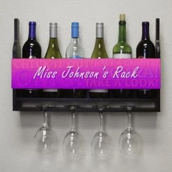 Outlet ???? BarMan CUSTOMIZABLE Wall Mounted Wine Bottle & Glass Hanging Shelf W/ Fun Pink Plaque ????